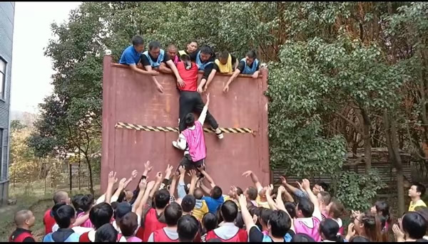 而我司百人团队通过该毕业墙项目也仅花了18分钟,在这样一个团队首次翻越时间也是少之又少的。在真正的战场上这就是与死神搏斗的一个过程,能够成功的将每位成员救离火海,这就是最大的胜利。通过牺牲小我,成就大我的无畏精神,才能成就我们彼此的明天,只有将我们脊背及双手交给我们最信任的伙伴,我们才能获得共同的重生。